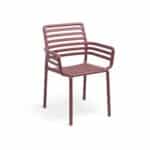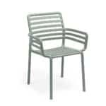 Doga Armchair, fresco, ligero y ergonómico, es un asiento de exterior de resina reforzada con fibra de vidrio, que se inspira en las lamas reinterpretadas en clave contemporánea por el diseñador Raffaello Galiotto. Es manejable, apilable, fácil de limpiar y completamente reciclable.