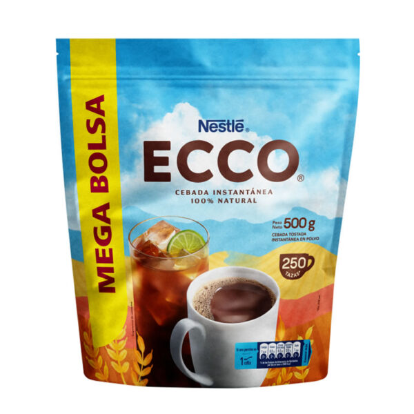 Bebida de extracto de malta, leche, cacao en polvo y enriquecido con vitaminas y minerales.