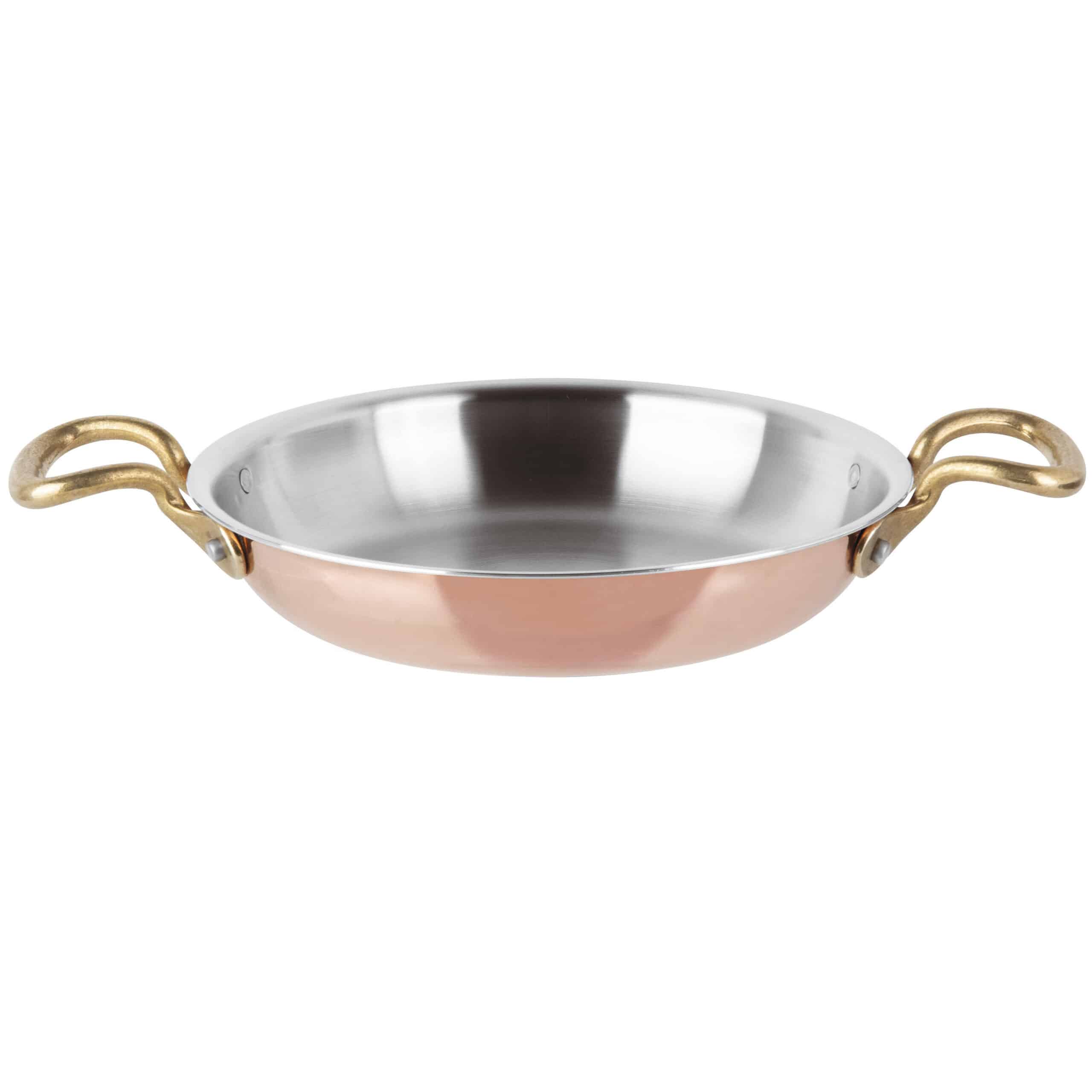 Una mezcla para una difusión térmica homogénea y dulce que asegura una cocción sin quemar los alimentos, conservando sus propiedades nutricionales y características organolépticas. Interior de acero inoxidable, práctico y fácil de limpiar. Aluminio de capa media, ligero y muy buen conductor de calor. Acabado exterior de cobre brillante. Mangos de latón macizo ensamblados con remaches de sección resistente. Apto para su uso en todas las cocinas, incluida la de inducción.