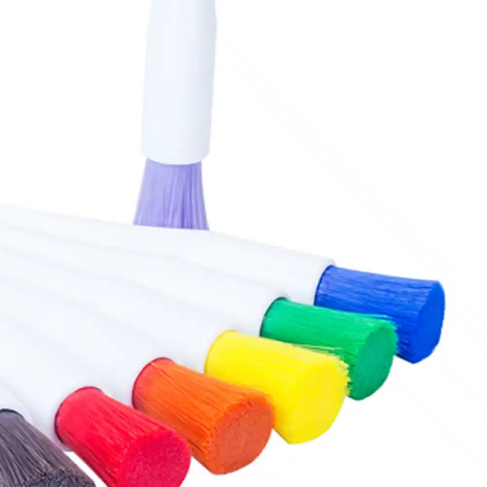 Pincel sanitario con fibras suave de nylon de 1 3/4 (4.44 cm) de largo, 1” (2.54 cm) de diámetro y calibre de 0.008”. Populares en la industria de panificación en áreas de proceso de alimentos en general.