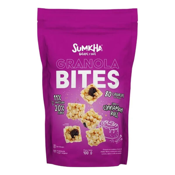 Granola en cubitos a base de maní, fibra y avena con manzana. Sabor a manzana verde.