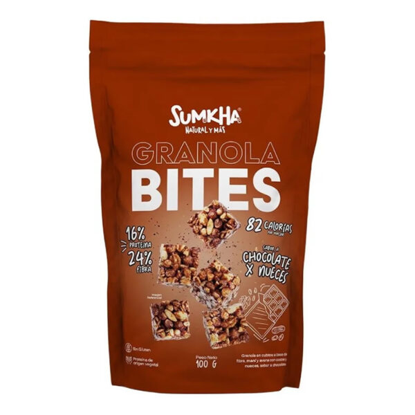 La granola bites es alto en proteína y fibra, bajo en calorías, sin gluten y con sabor chocolate y nueces, dulce de leche, cinammon roll y manzana.