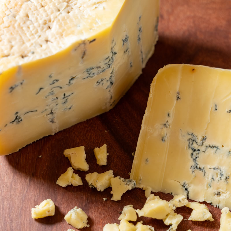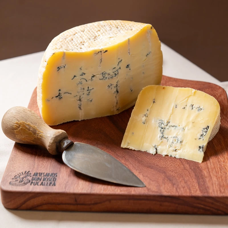 Presenta textura cremosa y sabor intenso debido a la presencia del característico hongo azul,